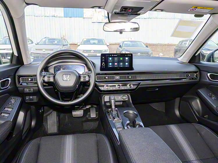 新款思域提供皮/织物混搭座椅、前排双Type-C接口、后排双Type-C接口、后排出风口等实用配置。同时,新车取消非全尺寸备胎,改为车载充气泵+补胎液,更加轻便实用。
