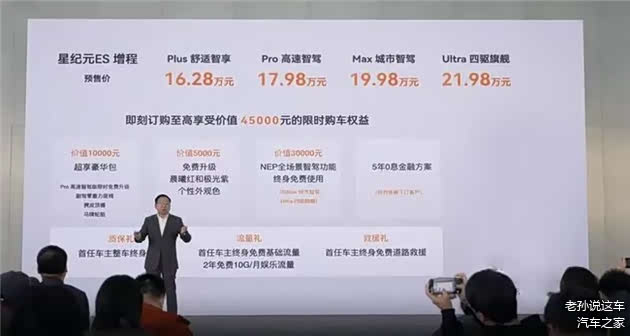 让我们回溯上文提到的价格,星纪元ES增程版的预售价比纯电版最多便宜8万,而结合后续正式上市时大概率会给出的优惠,其入门版价格或将来到15万级别。用黄招根自己的话说,这是非常有魄力的定价,星纪元是2025新能源的卷王。面对无法回避的市场竞争,原本坚持高端的星纪元准备主动出击。