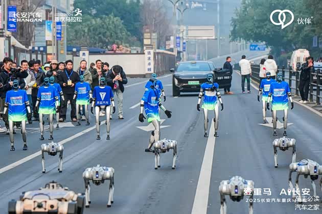 然而,除了赛事本身的高燃氛围,长安汽车以AI科技助阵赛事,成为本届马拉松的最大亮点之一。今年长安汽车更是带来高阶智驾领航、机器人“啦啦队”、机器人访谈等高质量AI应用场景,在地、空、天、网全面融入AI元素。这不仅是一场科技与运动的碰撞,更代表着长安汽车始终以用户为中心,不断推动AI技术走进生活,让用户在日常中体验科技带来的便捷与乐趣。