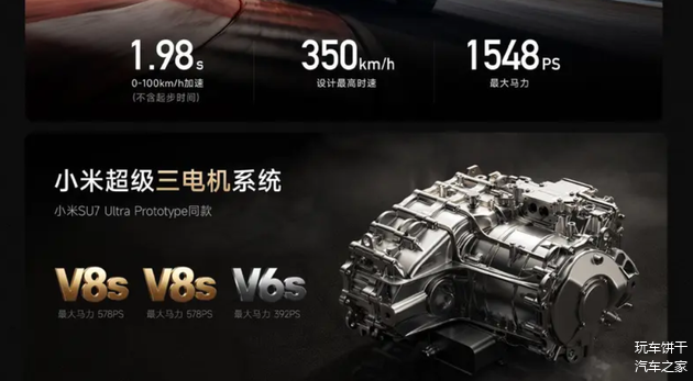 三电机系统:标配双V8s+V6s电机,最大功率1548Ps,支持全轮驱动,适合赛道和日常驾驶。