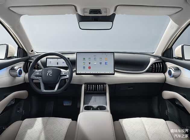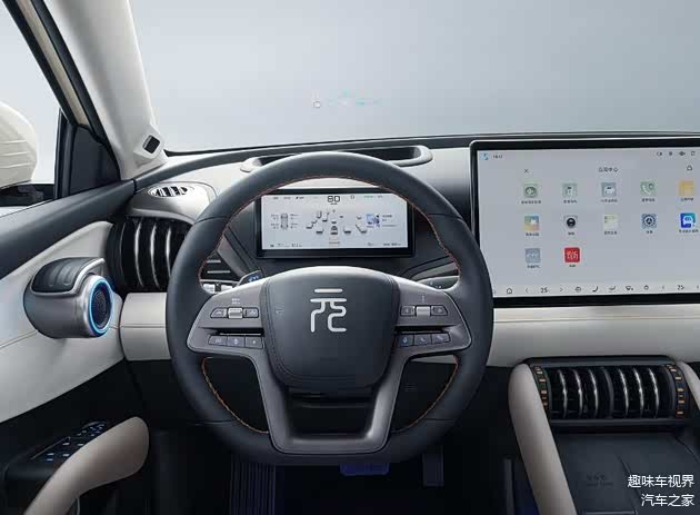 进入车内,第二代元PLUS智驾版的内部提供暮云灰和轻奢米两种配色可选,换装了大尺寸全液晶仪表盘和四辐式D型方向盘,并采用怀挡式换挡机构。而在配置方面,提供有前排座椅通风/加热、全景天窗、主驾侧眼镜盒、LED柔光美妆镜等配置,还将会在中央扶手箱处配备有车载压缩机冰箱,配置更为厚道。
