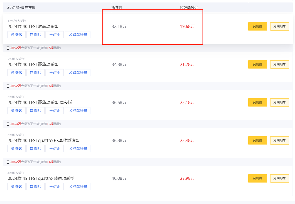 24款奥迪A4L的裸车价20万以内绝对不是乱说,所以,20万买新车还是二手?很难选择吗?