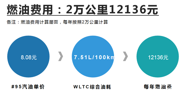 当下大众买车,关注点自然会落在车型的油耗问题上,那么这款车型的燃油经济性表现如何呢?以2025款迪拉克CT5版本车型为例,车型搭载的是 2.0T 高性能发动机,目前车型搭载的是95号燃油,车型WLTC工况下为7.51L/100km,结合目前上海95号汽油价格是8.08元每升,按照1年2万公里计算,每年的燃油费用是12136元。