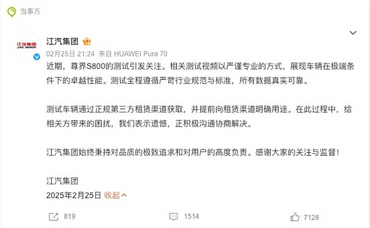 最近尊界S00和奔驰迈巴赫的对比视频很火,迈巴赫车主现身讨要说法,说车租出去,轮毂变形了,不少人质疑尊界的对比视频中,是把迈巴赫的车胎放了气了。 对此,今天尊界方面回应了:测试车辆通过正规第三方租赁渠道获取,并提前向租赁渠道明确用途,测试全程所有数据真实可靠!