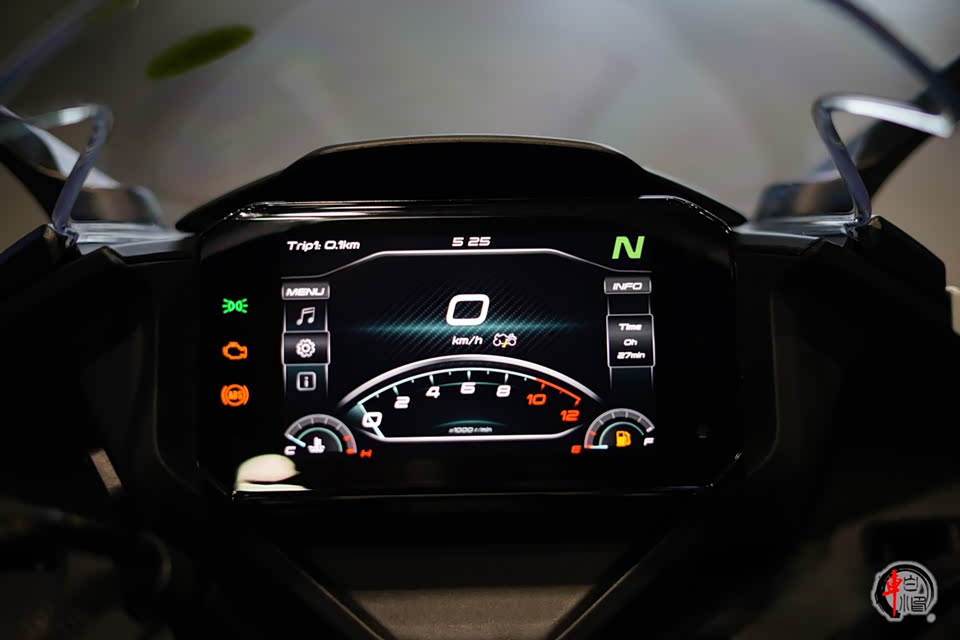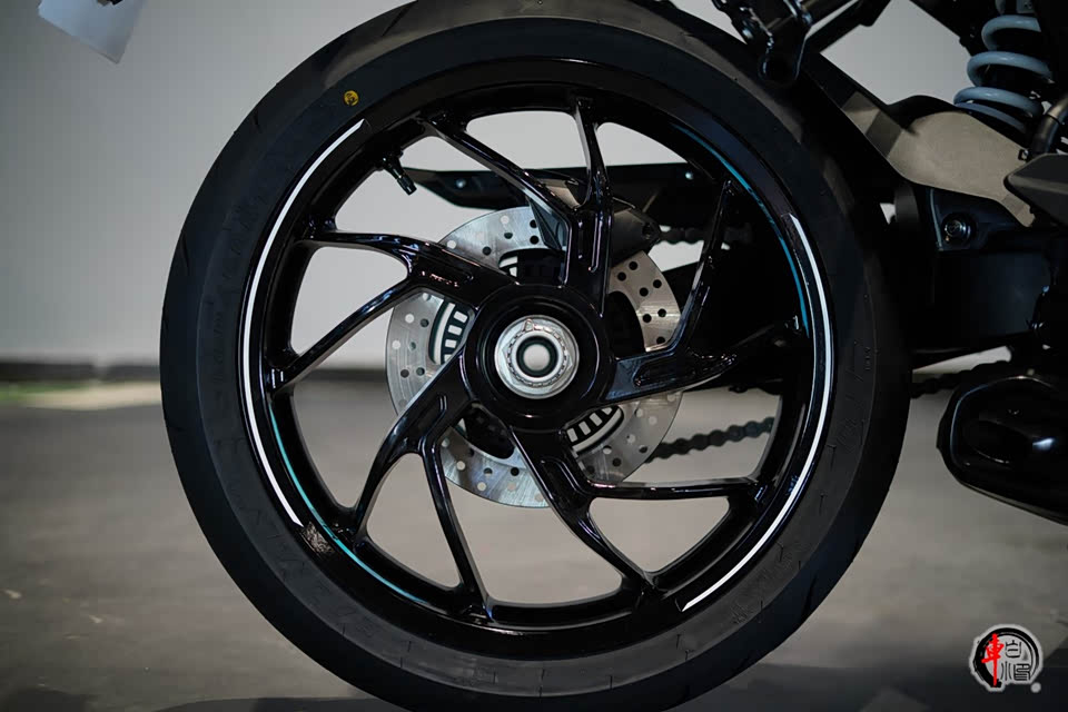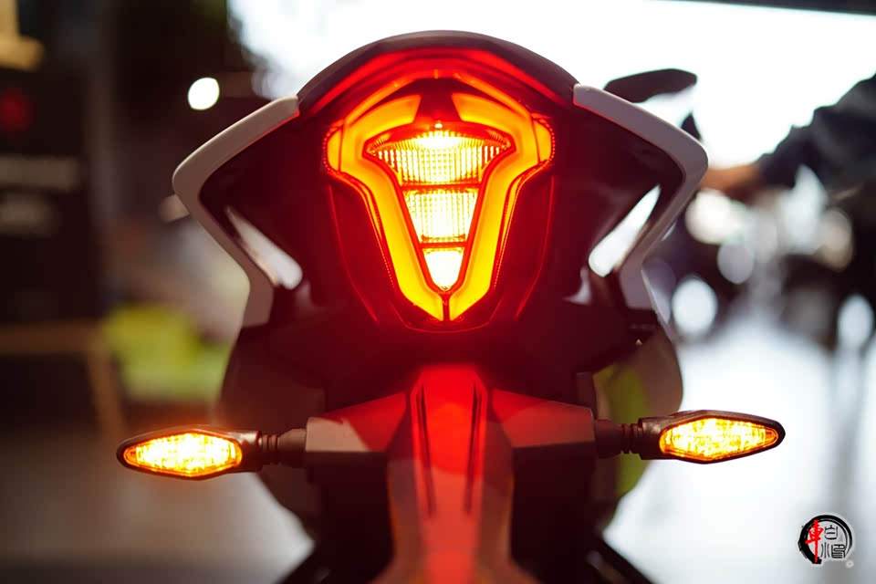 外观方面,新车采用星光黑/白双色漆面,工艺更细腻。前脸定风翼双层结构设计,配合下沉式腰线,营造出俯冲姿态。铝合金单摇臂降低簧下质量,展现半裸美学。全车LED灯光系统,夜间照明效果堪比汽车级。5英寸曲面TFT全彩液晶仪表,支持导航投屏和OTA功能,发动机ECU、ABS均可远程升级。