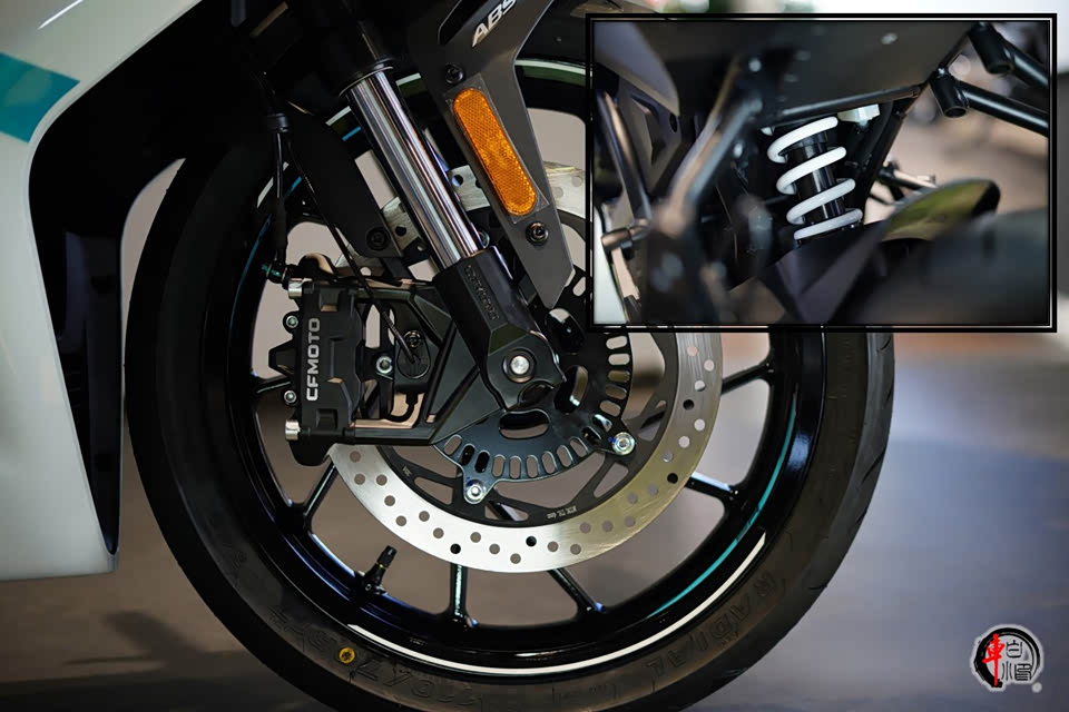 底盘硬件方面,整车轻量化设计,整备质量仅155kg。铝合金单摇臂进一步降低簧下质量。780mm座椅高度,骑行三角设计符合人体工程学。KYB减震系统提供可靠操控支持。刹车系统采用前后盘刹,标配双通道ABS和TCS牵引力控制系统。
