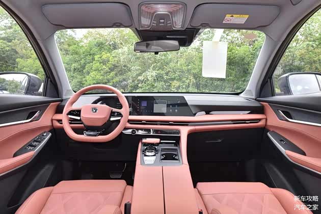 内饰方面,长安CS75 PLUS配置了由两块12.3英寸的液晶屏幕组成的双联屏。此外,中控台与门板皆用皮革包裹,用料精致。