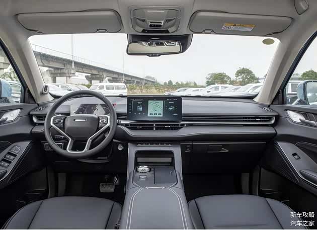 哈弗H6搭载12.3英寸液晶仪表盘+10.25英寸中控屏+10英寸HUD全彩显示,可实现三屏联动。值得一提的是,仪表盘和中控屏皆为悬浮式设计,科技感十足。