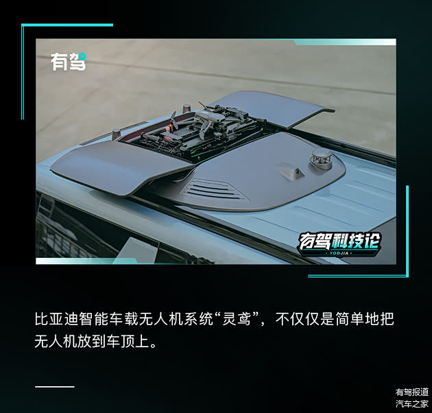 比亚迪联手大疆进行深度一体化设计,通过以下四大科技实现车与无人机的绑定。
