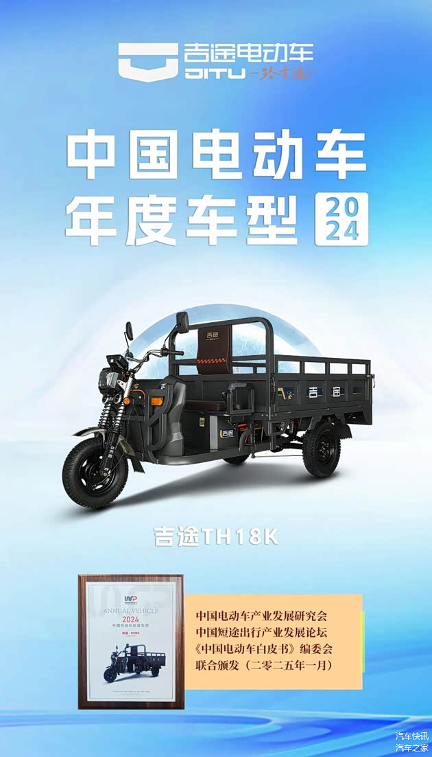 吉途货运三轮车优异的品质表现,积累起“耐用、能跑、有劲儿”的口碑,也成功斩获了“中国电动车年度车型”这一殊荣。
