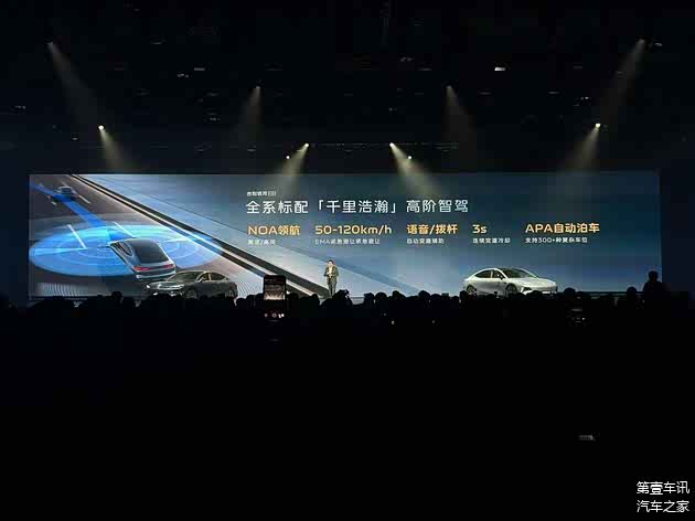 在这款新车的智驾系统配置方面,默认配置了一套千里广袤无垠的高级智驾系统,该系统包括1颗126线激光雷达、5个毫米波雷达、10个摄像头以及116 TOPS高性能的双智驾芯片。除此之外,该系统还具备高速和高架NOA导航功能,以及拨杆、语音自动变道辅助、加塞识别和自动泊车等多项功能。