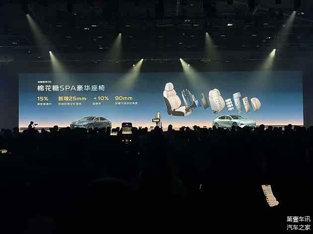 在车辆的内部装饰上,这款车与之前的版本相差无几,但新增了半辐方向盘的选项,并继续配备了悬浮音响、香氛和氛围灯。另外,在2025版的吉利银河E8中,全球首次发布了一块45英寸的8K无界显示屏,该显示屏的有效显示区域尺寸为1130mm*138mm。相应地,高通骁龙8295芯片内置了名为“银河的无界座舱”的功能,并与魅族Flyme OS相结合,支持三指任务流转、地址流转上车和双向卫星通讯,同时还提供AI银河精灵功能。新车配备了23个扬声器的Flyme Sound无界之声开始播放。这款新车还配备了豪华的棉花糖SPA座椅,采用了慢回弹记忆海绵和微压舒缓层,并搭配了8点的按摩气袋,以及加厚和加长的后排坐垫。后排的VIP电动行政座椅可以一键调节坐垫和靠背,同时提供加热、通风和按摩功能。