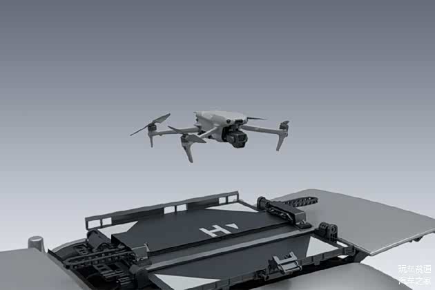车载无人机舱:采用全球首创的伸缩停机坪方案,厚度仅21.5cm,车顶集成后总高度不超过2.05米,满足城市地库通行需求。舱内配备100W快充接口,30分钟可将电量从20%充至80%。