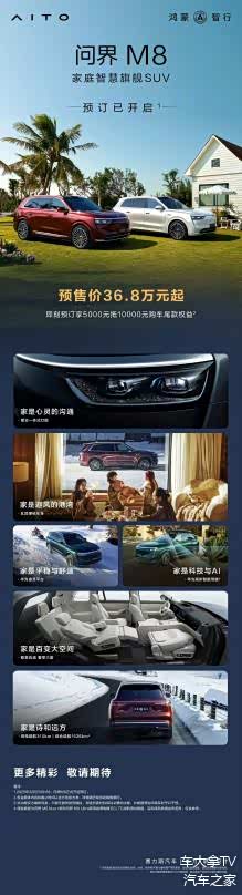 问界M8小订36.8万元的预售价已切入豪华品牌腹地,结合5000元抵10000元的预订权益,实际入门门槛下探至36.3万元。这一价格与同价位产品相比已经具有相当的竞争力。
