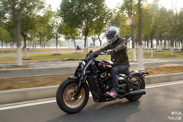 没有采用V型双缸的RA600在骑行姿态上很有自知之明的并没有向美式巡航的高把大前轮尺寸的风格靠拢,铝合金车把的高度与750mm座高很协调的形成了上半身稍微向前倾斜的运动化坐姿。脚踏的位置虽说是巡航车标准前置布局但不过于突出,驾驶者的大腿与小腿的夹角舒展合适又保持了一定的夹持感和紧张度。这样的骑行三角营造出了一个偏向运动感而不是长途舒适度的骑行感受,加上前面发动机部分提到的那种不紧不慢的鼓动感,RA600骑行起来运动却不刺激、惬意却不懒散,它很适合小长假里来一段中短途独自放松的旅程。