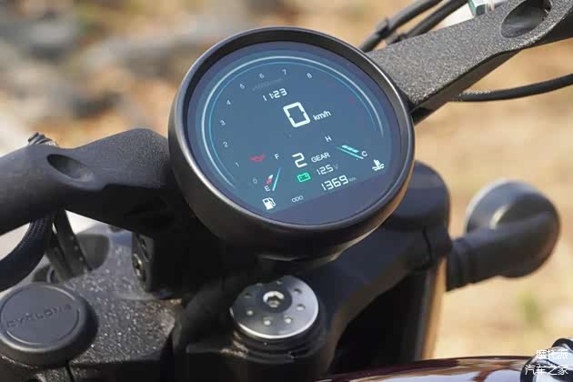 看到这个仪表的色彩和精细度你会不会觉得是LCD彩屏,其实它只是一块经过精心设计的负显液晶仪表,彩色部分是LED发光管和涂层透光营造的效果。作为一台复古巡航,RA600并不需要多么复杂的高科技仪表,只要在日光照射下做到精美、清晰和迅速易读就能在这方面给出高分,这种少堆配置多用心的态度是十分值得赞赏的。