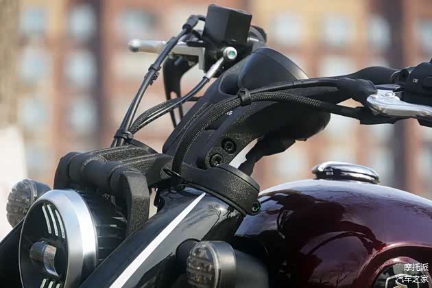 在车把部分,RA600使用了此类巡航车罕见的铝合金铸造方式而不是传统的一体钢管车把,与带有头灯支架的减震上联板一体化设计并进行了喷塑表面处理。