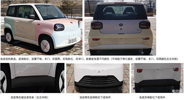 动力方面,这款新车配备的是一个功率为105kW的驱动电机。选装部分,新车申报了不同样式的轮辋,车窗边框亮条,前后装饰件,外后视镜等方案。