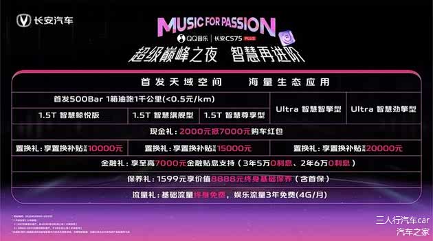 与此同时,为助力更多用户开启明日出行体验,3月8日—3月31日期间,用户下订第四代CS75PLUS全系产品,立享以下五大权益,至高享受总价值近40000元优惠!