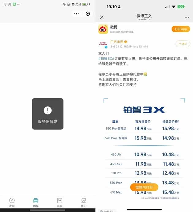 如此硬核的产品,市场反馈自然异常火爆。上市1小时内铂智3X订单就超过10000台,直接把服务器干崩溃,在主流传统品牌和新势力拉锯的新能源汽车市场杀出了包围圈,成为合资第一台爆单纯电车。