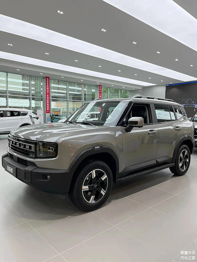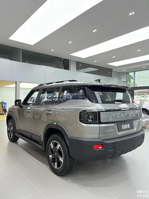 这款车的尺寸为4706/1967/1845mm,轴距达到2810mm,与哈弗大狗这一同级别车型相比,其体积显得更为庞大。这款车独特的“方盒子”设计与粗犷的线条完美结合,展现出一种强烈的肌肉触感,同时车顶的行李架和固定的侧踏板进一步增强了它的越野能力。此外,这款车独特的悬浮式车顶、花瓣状的轮毂以及四叶草尾灯的环状设计,都为其注入了一种时尚且前沿的感觉。为了满足消费者的独特喜好,车辆提供了各种颜色选项,如布罗莫蓝、青山翠、鎏沙金、雪山银、冰川白和极夜黑。