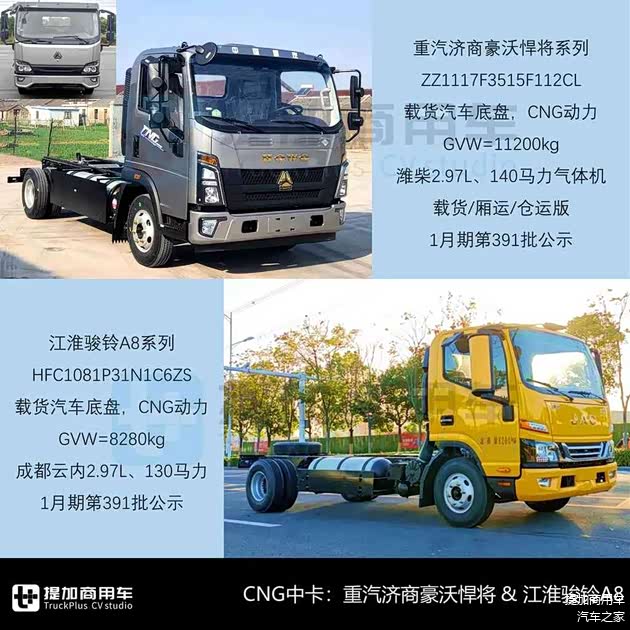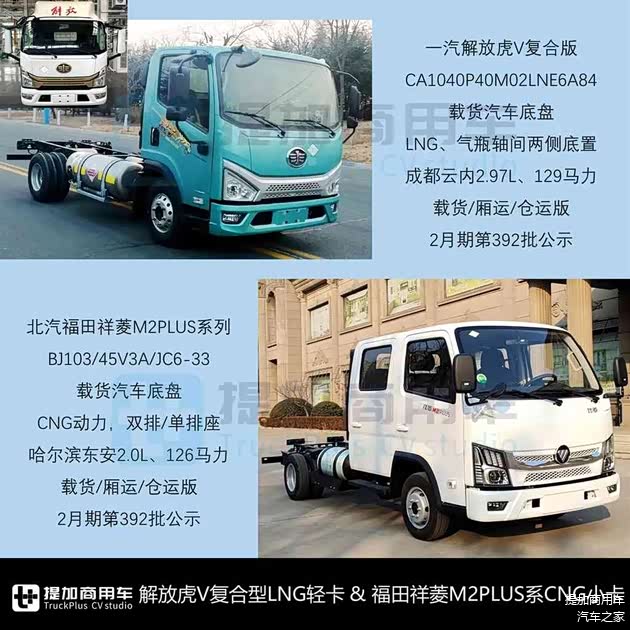 解放虎6G复合版LNG轻卡、福田祥菱M2PLUS,豪沃悍将焕新、江淮骏铃A8中卡