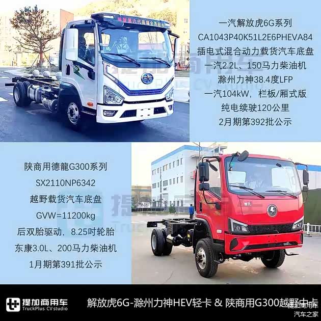 广汽日野新款、解放-滁州力神HEV轻卡,东风天锦BEV环卫版、陕商用越野中卡