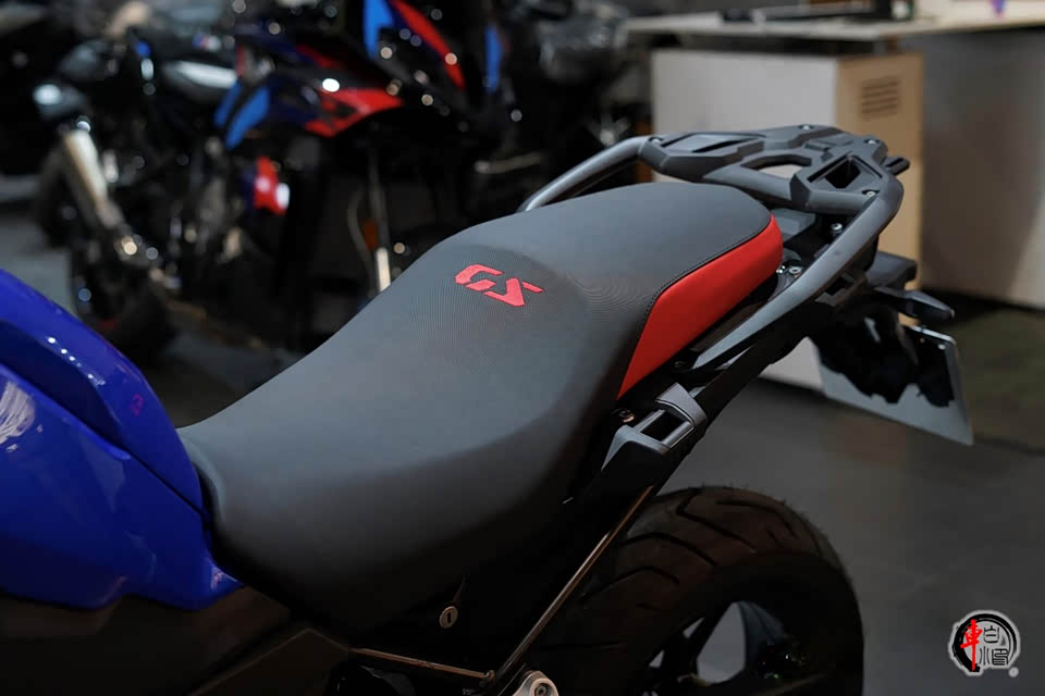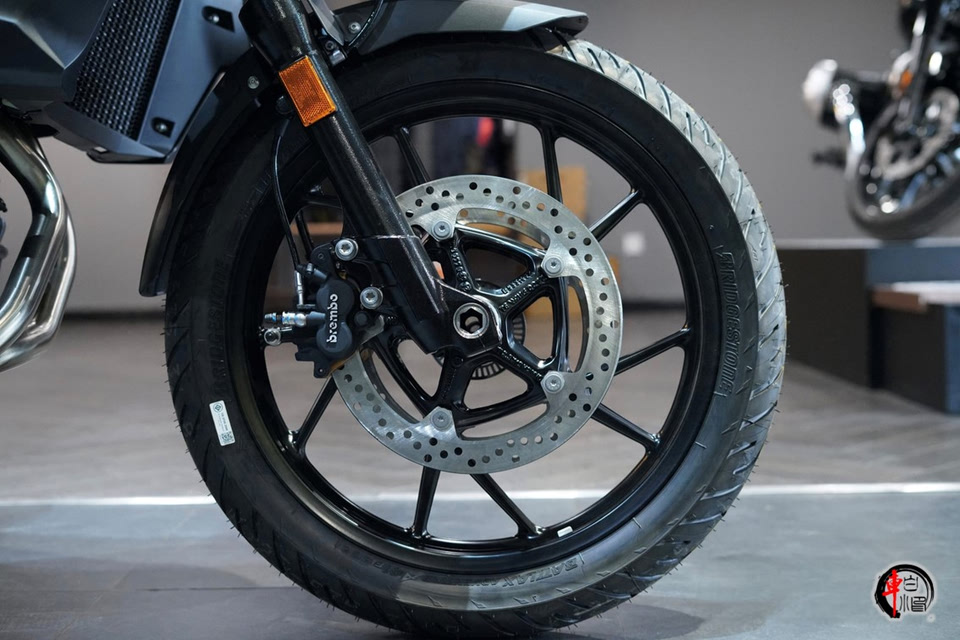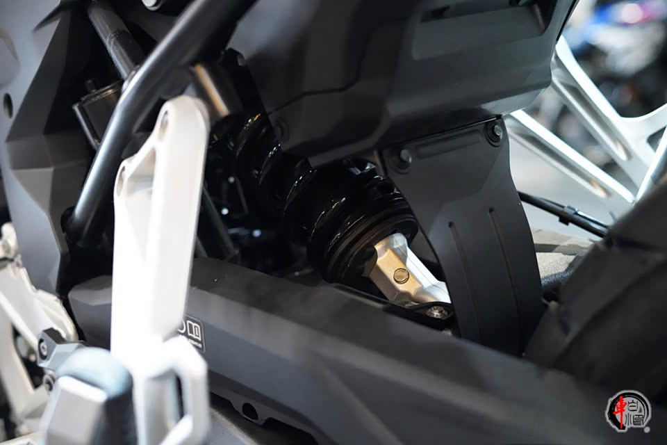 底盘硬件方面,采用钢制车架与铝合金后摇臂,兼顾稳定与舒适。座椅高度可选,适应不同骑行者。15升油箱容量满足日常骑行需求。可变三箱支架既满足拓展储物需要,又使车身更显干练。减震系统采用41mm正立前叉,中置后减震铰接点位置重新计算,保证良好支撑性和舒适性。刹车系统采用Brembo刹车系统与ABS Pro弯道制动逻辑,搭配TCS牵引力控制系统,保证驾驶稳定性与安全性。