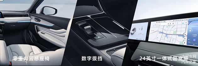 车内云感智能座舱采用零重力云感座椅、24英寸一体式超宽屏以及数字拨挡,605L的后备厢空间,后排座椅放倒可扩容至1520L,同级最宽1476mm后排肩部空间,后排三人乘坐也能尽情舒展身躯。
