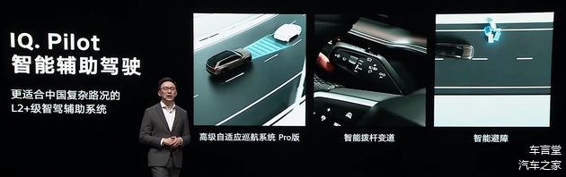 智驾方面,新车搭载新一代IQ.Pilot智能辅助驾驶,实现L2级辅助驾驶功能,拥有全速自适应巡航、车道居中保持、自动变道等功能。IQ. Drive泊车管家系统拥有自动泊车、记忆泊车、遥控泊车功能。