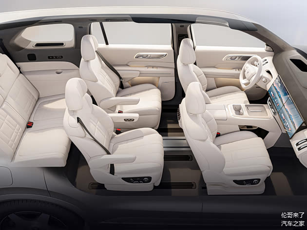内饰的亮点在于前排座椅间的中岛设计,其灵活性极高,可以在一、二排之间自由移动。前端设有手机无线充电面板,下方还有储物空间,前后均配备了水杯架。中间位置则是一个10L的冷暖车载冰箱,温度可以在零下6度至零上50度之间智能调节,满足了日常多样化的需求。