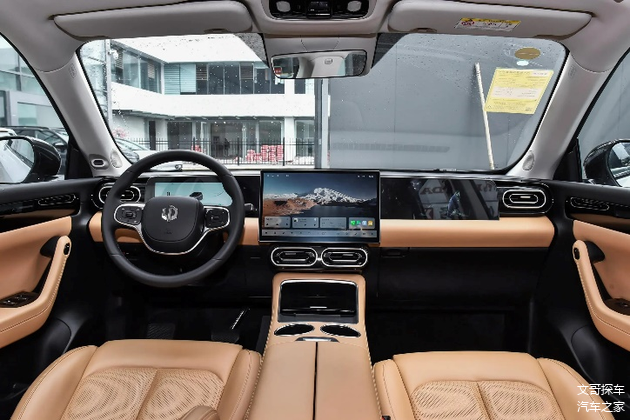 零跑C11的内饰设计则是更加符合当下主流的审美,大面积采用了皮质包覆和木纹饰板,细节的处理也非常精致,氛围灯更是隐藏到了木纹饰板里面。科技配置方面,更是全系标配了全液晶仪表,2.5K的中控屏和副驾娱乐屏。