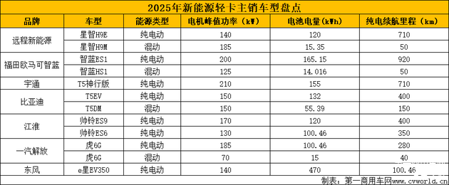 总体而言,2025年,新能源轻卡市场将呈现“政策助推、技术升级、场景细分”的特征,具备快速响应能力与创新实力的企业有望领跑行业。下面,我们看看今年主流企业或品牌都有哪些主推产品?