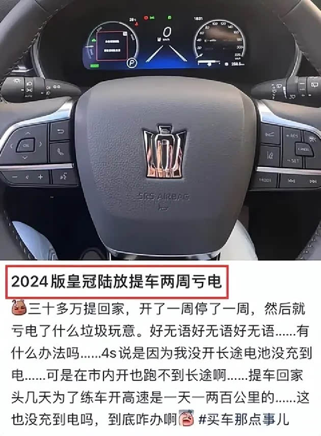 结合皇冠陆放关于亏电问题的投诉信息来看,所有出现亏电的问题车辆均是2024款车型,购车日期最早为2024年6月,最晚为8月,且发现问题时最短行驶里程仅80公里,最长的也不到4000公里,完全就是车辆本身的缺陷。