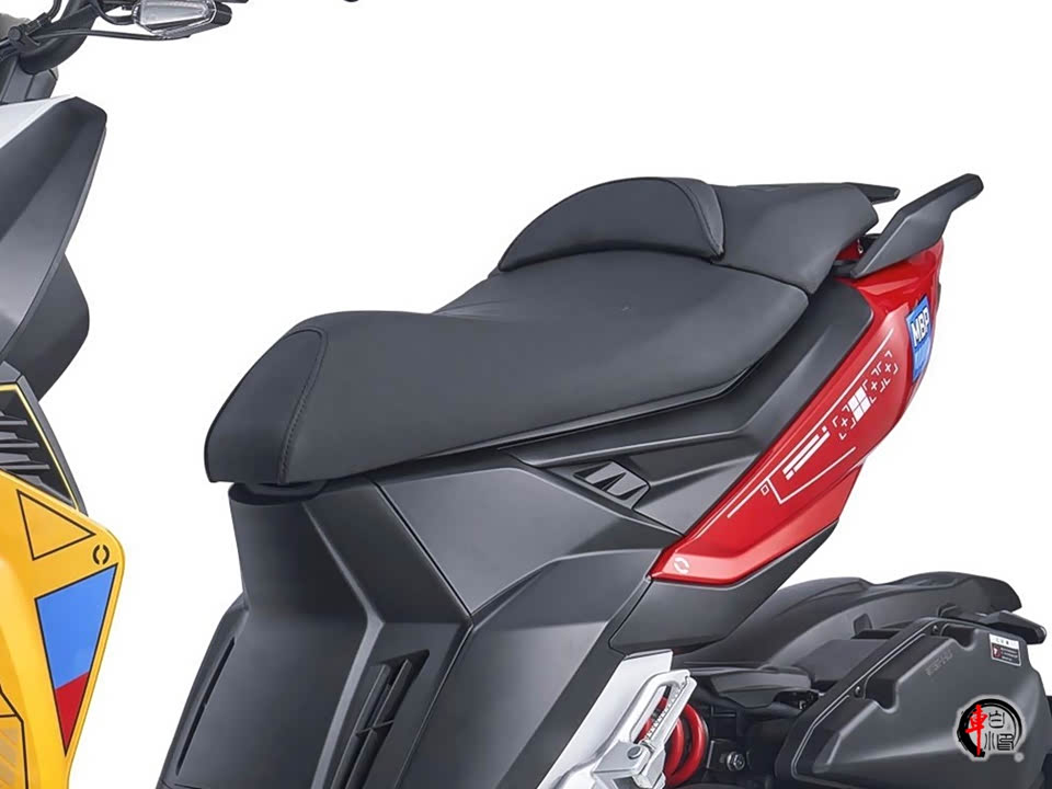 底盘硬件方面,高张力双管式车架配铝合金后摇臂,减轻重量保证强度。整备质量140kg,座高780mm,坐垫前端收窄设计,身高160cm骑手也能全脚掌着地。坐桶空间可容纳头盔,开放式储物盒和纯平踏板扩展储物能力。减震及刹车系统出色,前伸缩式正置前叉,后预载可调中置设计。刹车系统前后盘刹,标配双通道ABS和TCS,TCS可独立关闭。