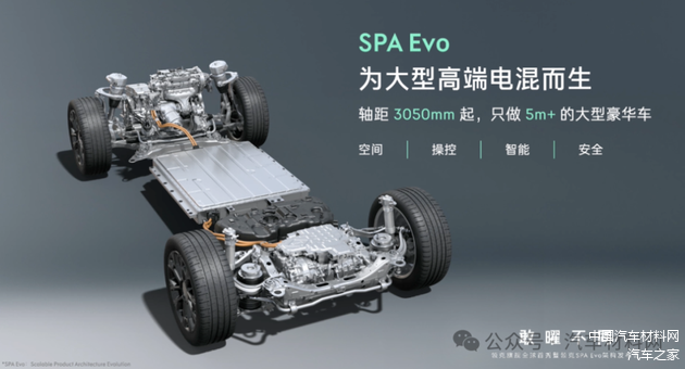 SPA Evo是大型电混车专属架构,由SPA架构衍生而来。