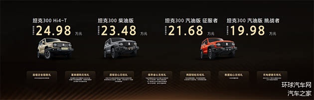 3月10日,2025款 坦克300在珠海横琴文化艺术中心震撼上市,此次推出的Hi4-T混动版、柴油版及汽油版三种动力车型,官方指导价区间为19.98万元至24.98万元 ,并同步推出七大购车权益。
