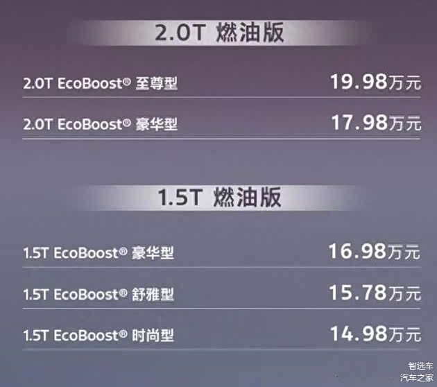 2025款长安福特蒙迪欧于2024年9月正式上市,在车型版本上有了调整。并新增紫韵灰配色。在车型版本方面,取消了1.5T至尊型和1.5T ST-Line,同时增加了入门版的1.5T E-混动舒雅型。调整后,1.5T动力版本有时尚型、舒雅型、豪华型;1.5T E-混动版本提供舒雅型和豪华型;2.0T动力版本包含豪华型、至尊型;2.0T E-混动则有运动版和运动版ST-Line车型可供选择。