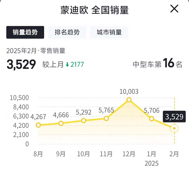 长安福特蒙迪欧的竞争对手包括大众帕萨特/迈腾、丰田凯美瑞/亚洲龙、本田雅阁、日产天籁、别克君越等车型。从销量来看,蒙迪欧2月份售出3529辆,此次推出限时优惠之后,应该也会有助于其销量进一步提升。