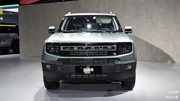 捷途自由者采用了方盒子造型设计,设计样式和旅行者相似。其大灯采用了四叶草样式,设计新颖,内部灯腔设计层次分明,并采用“JETOUR”英文徽标,配合黑色的下包围,整体展现出很强的越野属性。不过就这款的配置来看,其更多的还是偏向城市用车,方盒子越野只是其提升颜值的手段。不过相比普通城市SUV,其越野能力会更强,该车的离地间隙 200mm,涉水深度可达 700mm。