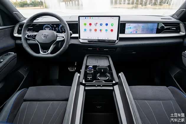 新车的内饰搭配10.3 英寸数字液晶仪表屏+15 英寸 2K 分辨率中控+11.5 英寸副驾驶娱乐屏+HUD的组合,相信熟悉大众的朋友,对这套设计应该不陌生了吧,此前在迈腾等车型上都出现过。