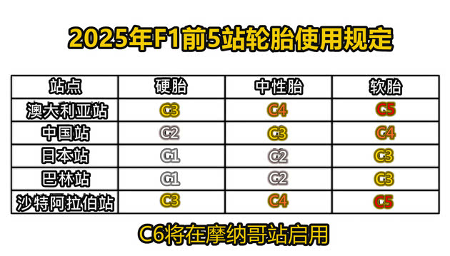 那么在即将开始的F1大赛中倍耐力会使用哪些轮胎呢?下面来看看2025年F1前五站比赛的轮胎配方设定。澳大利亚站,硬胎(C3)、中性胎(C4)和软胎(C5)出战;中国站,硬胎(C2)、中性胎(C3)和软胎(C4)登场;日本站、巴林站都是硬胎(C1)、中性胎(C2)和软胎(C3);沙特阿拉伯站则是硬胎(C3)、中性胎(C4)和软胎(C5)。从这些设定能看出,不同赛道对轮胎的要求各有不同,同时每站赛道特性不同,车队和车手会根据战术来灵活选择。