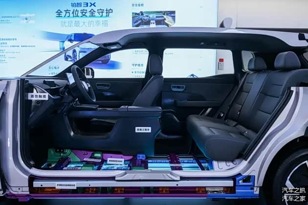 在安全性能上,铂智3X延续了丰田的严苛标准,从车身结构到电池防护再到智能驾驶系统均建立多重保障:车身高强度钢占比超七成,满足C-NCAP五星和CIASI GGG标准;电池组通过双侧90度柱碰测试实现电芯零侵入,配合双ECU冗余制动和紧急断电开关,彻底杜绝热失控风险;智驾系统更采用“三双一冗余”设计,确保系统稳定性和可靠性,形成从硬件到软件的全方位防护体系。