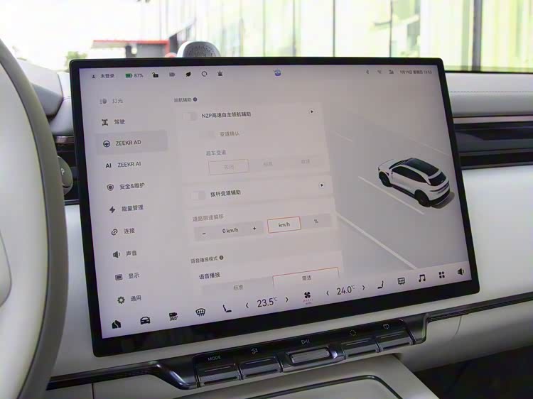 座舱内是环抱式仪表台设计,横向延展的线条与多色氛围灯带共同营造出通透的空间感。配备上下平直的三辐式多功能方向盘,内圈从2点钟到10点钟的位置做了皮质拼接,带来更好的质感,车辆标配13.02英寸液晶仪表和16英寸3.5K分辨率的MINILED中控屏,显示效果清晰细腻,夜晚状态也很柔和不刺眼,屏幕内置ZEEKR OS车机系统,UI界面PAD化,菜单逻辑简单易上手,屏幕下方保留了排按键和滚轮,做工紧致,阻尼适中,另外车辆还配备36.21英寸AR-HUD增强现实抬头显示,前排提供2个50W手机无线充电。