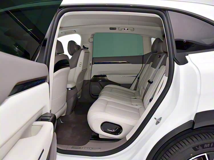 定位中型SUV,极氪7X的长宽高分别为4825*1930*1666毫米,轴距很长,达到了2925毫米,内部空间跟轴距成正比,最大头部空间1021毫米,最大腿部空间1187升,(身高179厘米)体验者坐在前排,将座椅调至最低时,头部空间余量超过1拳,保持前排座椅不动,来到后排,头部空间依旧有超过1拳的空间余量,腿部空间则是超过2拳,后排地台中间位置略有凸起,坐垫中间部分略短,舒适性不及两边位置,后排座椅靠背支持角度调节,能找到比较舒适的坐姿。
