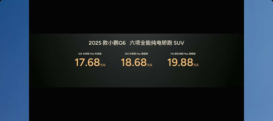这是组团炸了,2025款小鹏G6和G9价格 G6:17.68万~19.88万,顶配卡在20万内,合着上午是烟雾弹 G9:24.88万~27.88 万,听劝的G9,没搞当年那么多款型配置和选装 这场发布会常听到一个词就是“全系标配”,从MONA M03和P7+开始,小鹏找到了销量密码。 朋友们,这个价格行吗?G6咱试了,G9我觉得超长续航 Max这款性价更好,你们觉得呢?