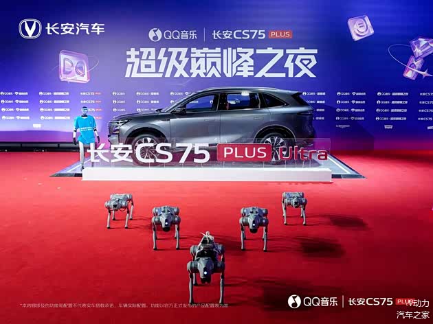 不仅在汽车市场,长安汽车全球首发的新蓝鲸500Bar高压直喷技术也在音乐界出圈了。在近日的“QQ 音乐超级巅峰之夜”,机器人和机器狗身上穿着带有长安新蓝鲸500Bar标识的服装,为长安第四代CS75PLUS打call,吸引了众多达人用户打卡、点赞。特别是机器人穿着带有长安新蓝鲸500Bar标识的服装走红毯,更成为此次QQ音乐节的一大亮点。