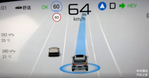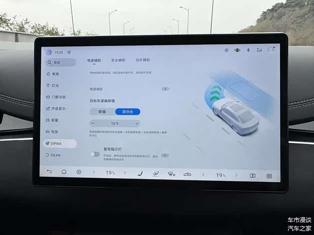 我和小伙伴都在诧异这车为什么能顶着超速罚款的红线开,这个疑问在驾驶辅助系统内的限速辅助功能找到了答案。在这个功能里,车主可以设定车速偏移值,上一位驾驶员将偏移值设定到了超速10%,所以车辆才能为了避险顶着时速上限快速过弯。