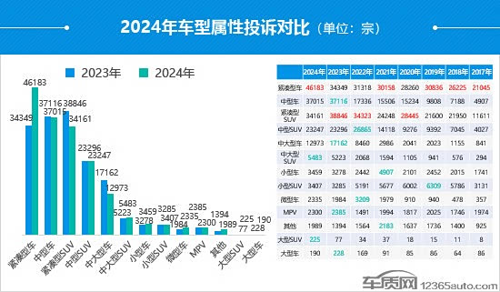 六、紧凑型车领跑 中大型SUV和大型SUV投诉活跃度升高