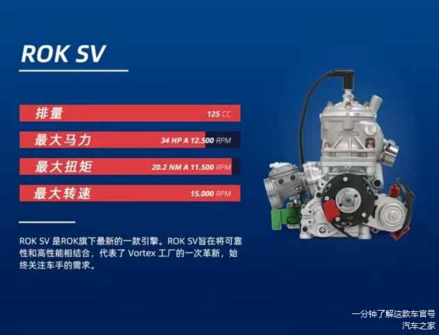 作为此次赛事的亮点,今年的CKC引入了一款全新的发动机,那就是Vortex Rok SV,来替代以往的IAME X30。虽然这两款发动机的排量均为125CC,但IAME X30的MAX POWER为30Hp,扭矩为19.5N·m,而Vortex ROX SV的最大马力可以来到34Hp,峰值扭矩为20.2N·m。